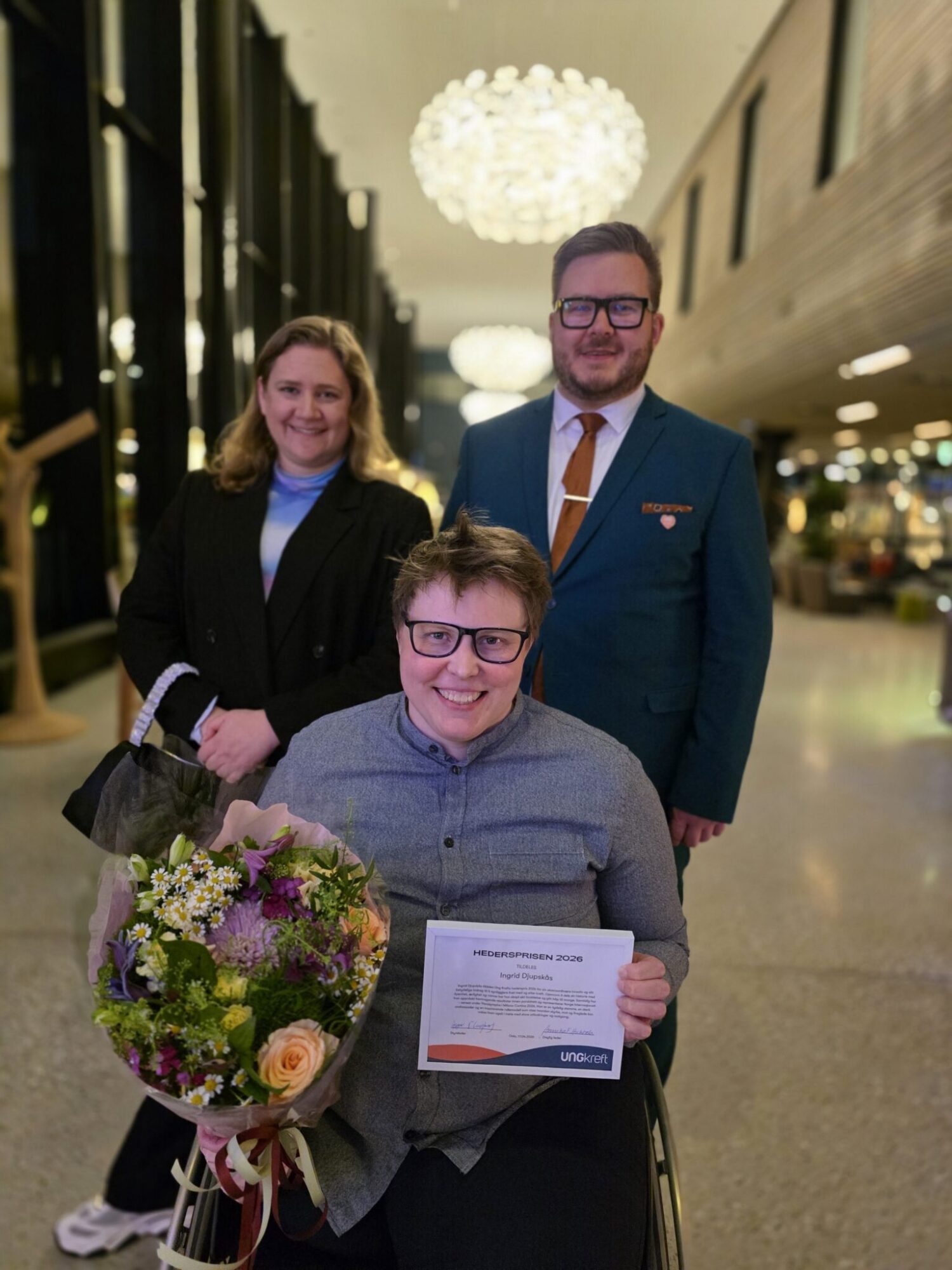 Ung Kreft sin hederspris deles ut til personer som har gjort en ekstraordinær innsats for unge berørt av kreft. I nominasjonen beskrives Ingrid som en tydelig stemme, en sterk rollemodell og en verdig ambassadør for organisasjonen.